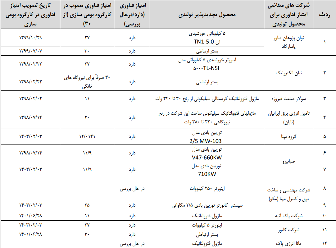 لیست شرکت های تولیدکننده تجهیزات تجدیدپذیر در ادامه اورده شده است
