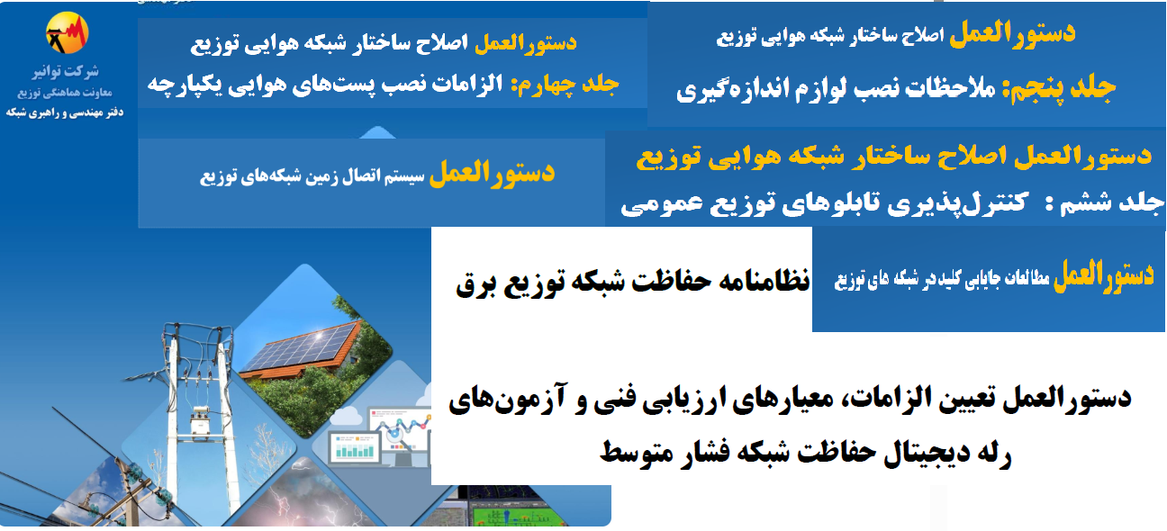در این فایل بیش از 100 دستورالعمل تولنیر در بخش های مختلف شامل اصلاح ساختار شبکه هوایی و کابل ها،مطالعات شبکه، نظامنامه حفاظت شبکه قدرت، تابلوهای توزیع، ترانس های قدرت، سیستم ذخیره، مطالعات اتصال کوتاه،پخش بار، سیستم ذخیره، کابل ها، مطالعات پخش بار و اتصال کوتاه سیستم قدرت، دستورالعمل بهره برداری و تعمیراتی، سیستم های خورشیدی،فرم های بازدید و تست و ازمون ها، کدگذرای و تجهیزات اندازه گیری،تهاتر و مبادلات انرژی، سنجش عملکرد تجهیزات شبکه و.... قرار داده شده است.